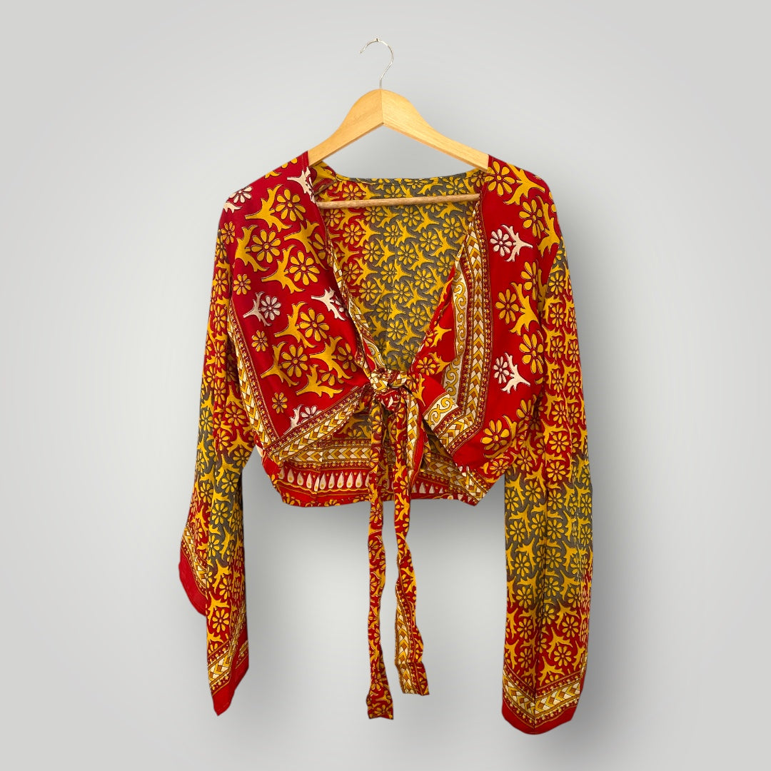 Ein Hauch Leichtigkeit und Eleganz für deine Yoga-Praxis oder den Alltag: Unsere Bellsleeves werden aus handverlesenen, preloved indischen Saris gefertigt – jedes Stück ein Unikat mit eigener Geschichte. Der fließende Stoff aus Seide und Viskose schmiegt sich sanft an die Haut und bewegt sich mühelos mit dir durch jede Asana.